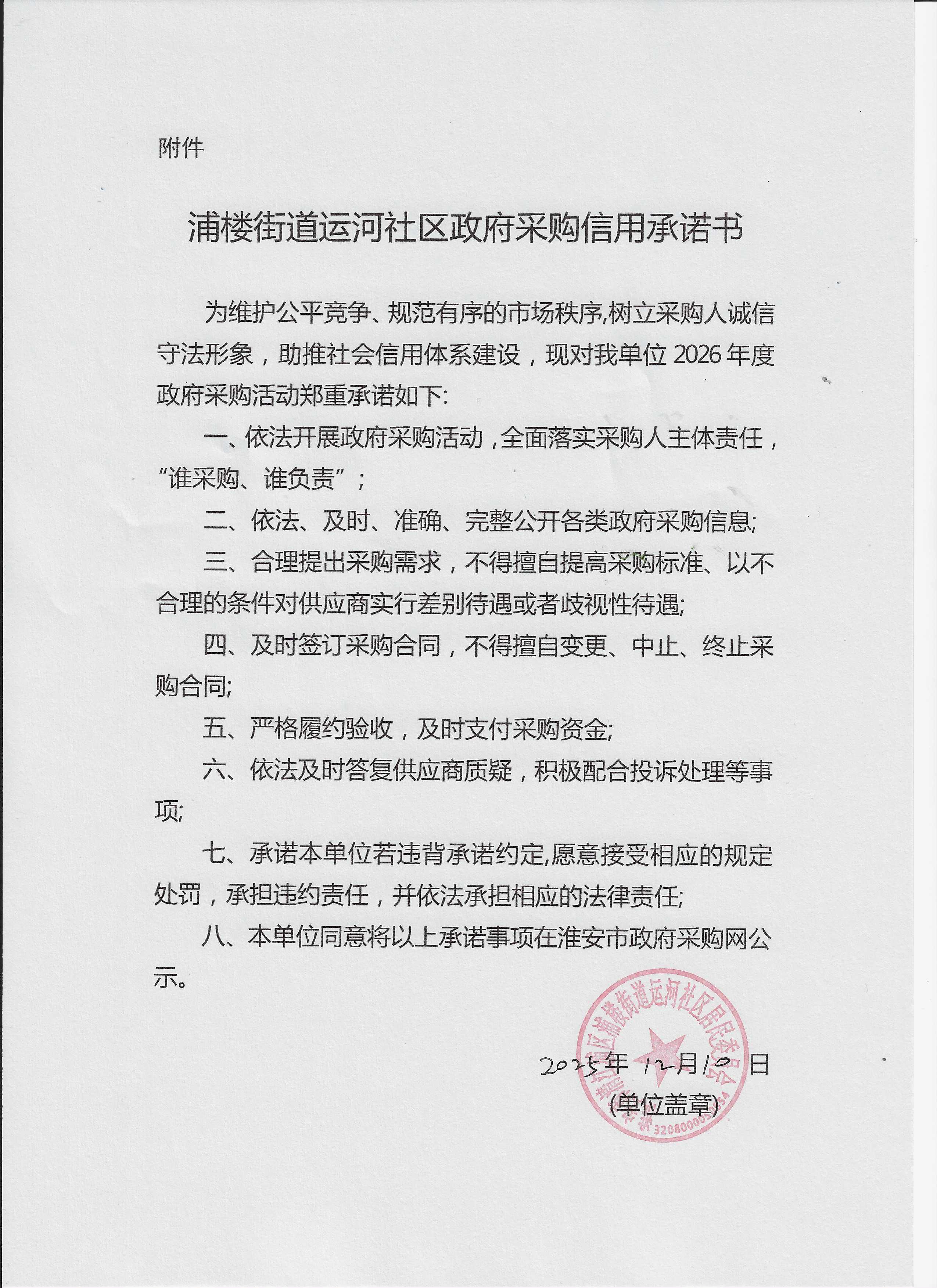 淮安市清江浦区浦楼街道运河社区居委会2026年度政府采购信用承诺书